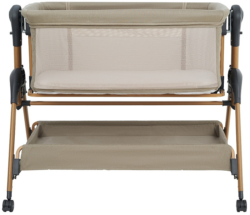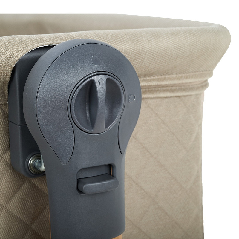 Всегда рядом: Специальная система крепления (ремни) позволяет быстро приставить колыбель вплотную к вашей кровати. Боковой бортик опускается на молнии, создавая единое пространство.
