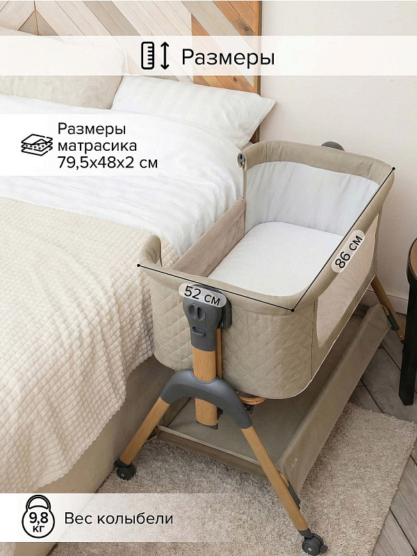 устанавливается вплотную к кровати родителей и надежно к ней крепится