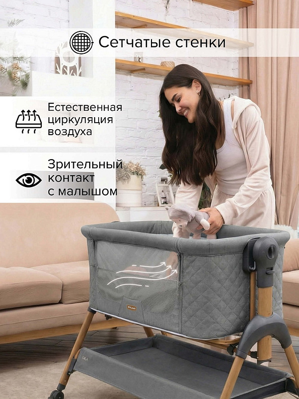 Pituso Lila — это умное решение для комфортного и безопасного совместного сна. Колыбель надежно фиксируется на кровати родителей, позволяя вам быть рядом с ребенком 24/7. Больше не нужно вставать по ночам: достаточно протянуть руку, чтобы покормить или успокоить малыша.