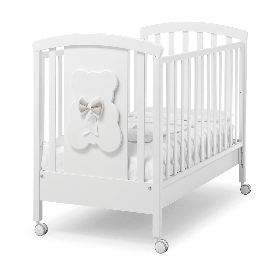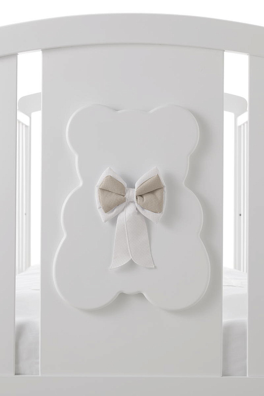 Кровать для ребенка с рождения Erbesi Dudu украшена аппликацией медвежонка с бантиком. Это классическая мебель на колесиках с двумя стопорами и резиновыми накладками. Боковые стенки регулируются системой secur-baby. Вы сможете одной рукой опустить и поднять боковину. Мебель изготовлена из натурального бука, окрашена не причиняющими вреда здоровью ребенка красками, покрыта экологичными лаками.