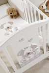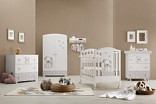 В первые месяцы использования основание матраса рекомендуется установить в верхнее положение, чтобы облегчить движения мамы, особенно после кесарева сечения. Оба бортика кровати могут быть отрегулированы для удобства мамы, когда основание матраса установлено в нижнем положении. Когда ребенок подрастет и сможет самостоятельно вставать и покидать кроватку, один из бортиков легко снимается. Кровать также оснащена широким ящиком, который удобен в использовании с обеих сторон.