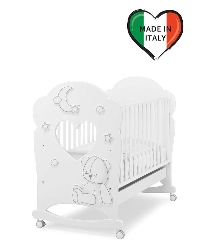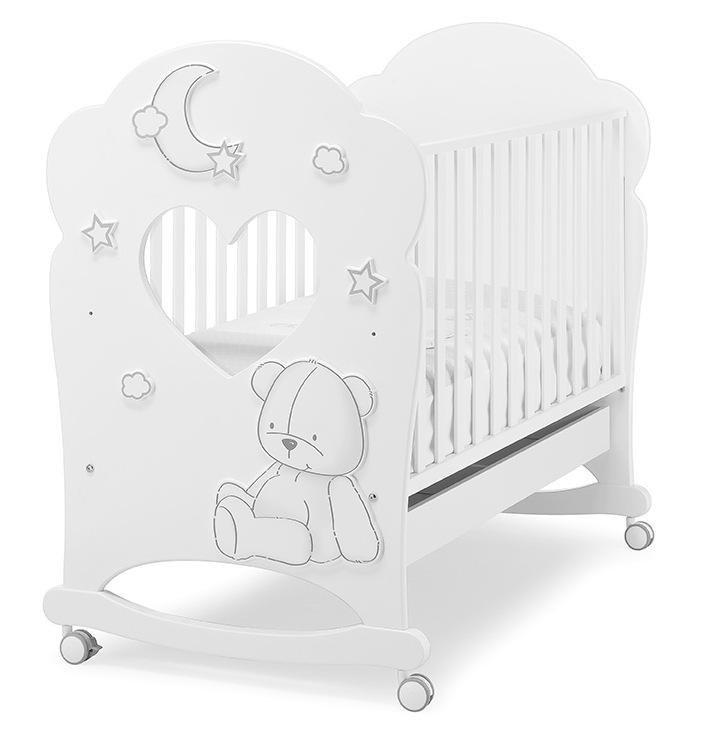 Erbesi Stella с окном - шикарная кроватка-качалка для новорожденного размером 125x65 см, выполненная из массива бука с отделкой из МДФ и окошком из оргстекла.