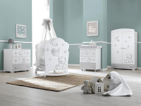 Функционал кроватки продуман до мелочей. Чтобы маме не наклоняться низко при укладывании и доставании из кроватки новорожденного, вы можете не только устанавливать дно в верхнем положении, но и опускать боковины. За счет колесиков мебель легко передвигать. Постельные принадлежности, игрушки и прочие вещи удобно хранить в подкроватном ящике.