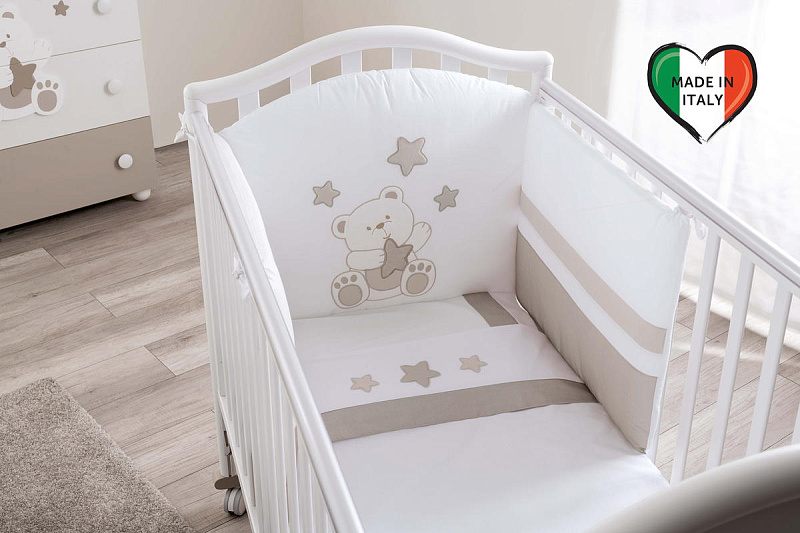 Кроватка Pali Orsone имеет внутренний размер 125*65 см и подходит для детей от 0 до 5 лет. Общий размер: 132x76x107 см. Кроватка оборудована запатентованным механизмом опускания боковин, который позволяет бесшумно одной рукой опускать и поднимать обе боковины. При этом исключена возможность ребенку самому это сделать. На верхней части боковин установлены силиконовые накладки для зубов. Подматрасник кровати выполнен в виде ортопедической сетки из неокрашенного бука и устанавливается в двух положениях по высоте. Верхний уровень - на расстоянии 48 см. от поднятой боковины, нижний - 64 см. Колеса покрыты резиновыми накладками, два колеса оборудованы блокирующим тормозом. Имеется выдвижной ящик, разделенный на две секции, выполненный из ламинированных панелей.