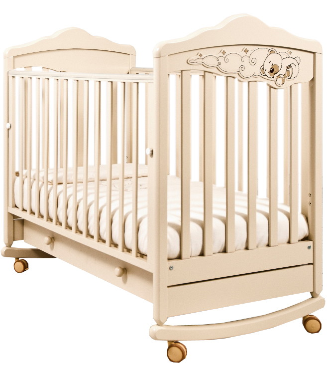 Детская кроватка Angela Bella Изабель колесо-качалка с ящ. 120х60см слоновая кость
