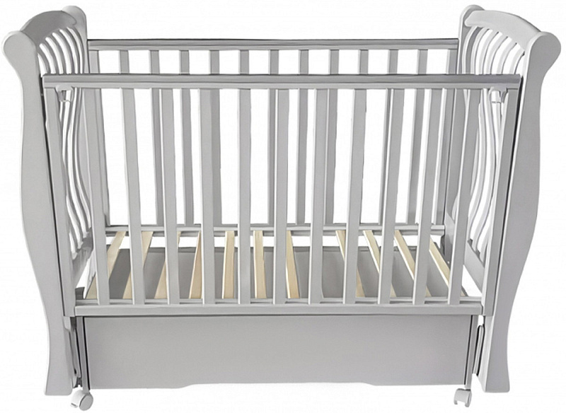 Модель имеет съемную переднюю стенку с механизмом автостенки, что упрощает доступ к ребенку. Реечное ложе регулируется по высоте, позволяя адаптировать кроватку под растущего ребенка. Вместительный закрытый ящик обеспечивает дополнительное место для хранения постельных принадлежностей и детских аксессуаров.