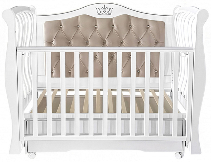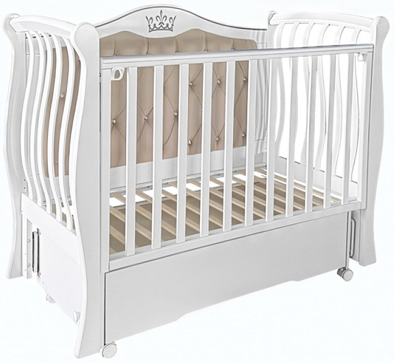 Детская кроватка Антел Luiza-333 (универсальный маятник,колеса, мягкая стенка) белый