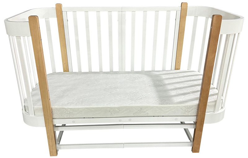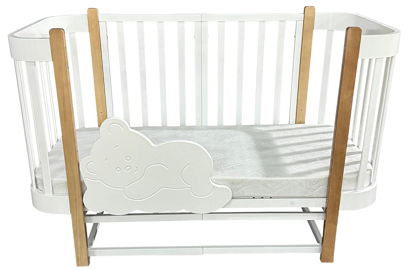 Новая кроватка Nezabudka 3 в 1 с комплектом для трансформации из кровати с размером спального места 910х700 мм до спального места размером 1400х700 мм. Впоследствии переднее ограждение можно убрать и использовать защитный бортик, который также идет в комплекте. Модель укомплектована продольным маятником, благодаря чему можно укачивать малыша. Также в комплекте есть колеса со стопорами для удобного перемещения кровати по комнате. Колеса и маятник можно использовать только раздельно друг от друга! Кровать выполнена из натуральных материалов и покрыта гипоалергенной краской, что абсолютно безопасно для Вашего малыша.