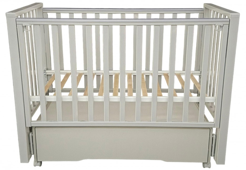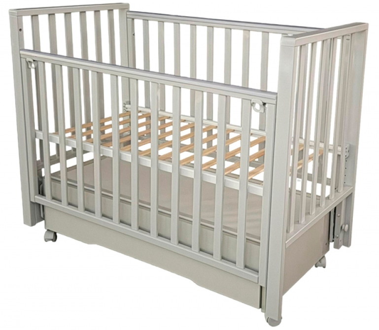 Реечное ложе с двумя уровнями высоты растёт вместе с ребёнком, обеспечивая комфорт и безопасность на каждом этапе развития. Съемная передняя стенка с двумя положениями позволяет легко укладывать и доставать малыша, бережно охраняя его сон.