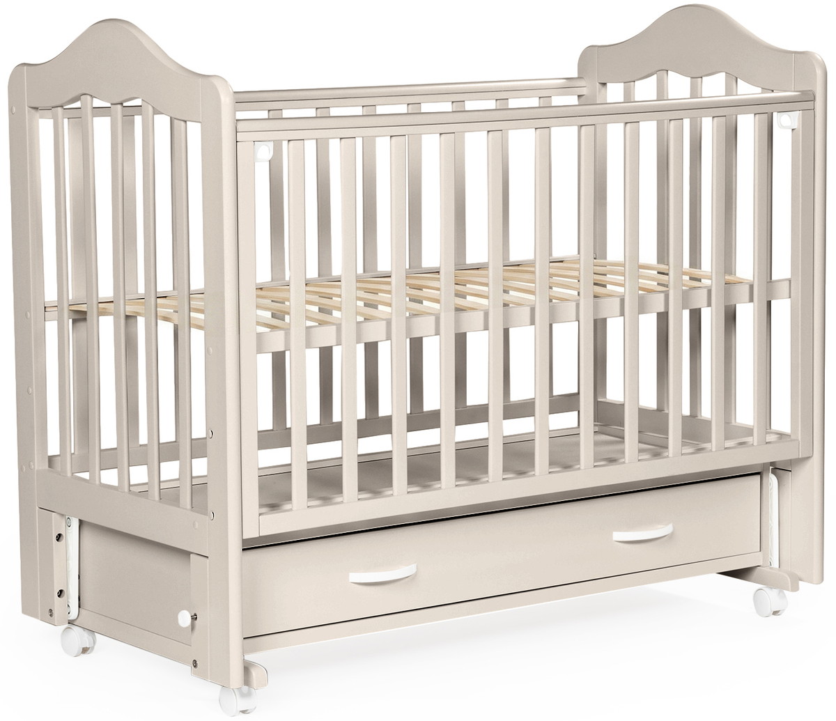 Детская кроватка Bebizaro Fillmore маятник универсальный c ящиком. Это функциональная кроватка, продуманная до мелочей, это максимальный комфорт и безопасность для вашего малыша. Каркас кроватки выполнен из массива берёзы. Для удобства родителям, боковая стенка кроватки регулируется по высоте. Модель оборудована вместительным и практичным ящиком для хранения, а также колёсами для её перемещения по комнате.