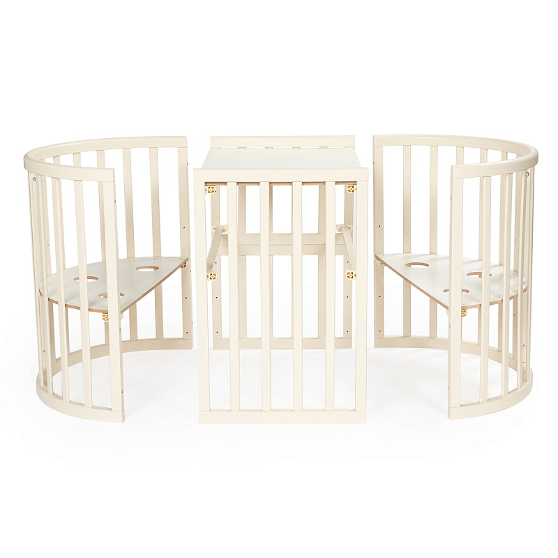 Благодаря отсутствию углов кроватка в любой из возможных трансформаций остается безопасной для ребёнка, к тому же округлые линии придают ее дизайну легкость и изысканность. А расширенная цветовая палитра из популярных оттенков позволяет подобрать расцветку на любой вкус в зависимости от эстетических представлений родителей и особенностей интерьера.