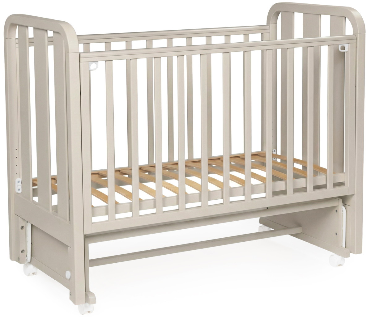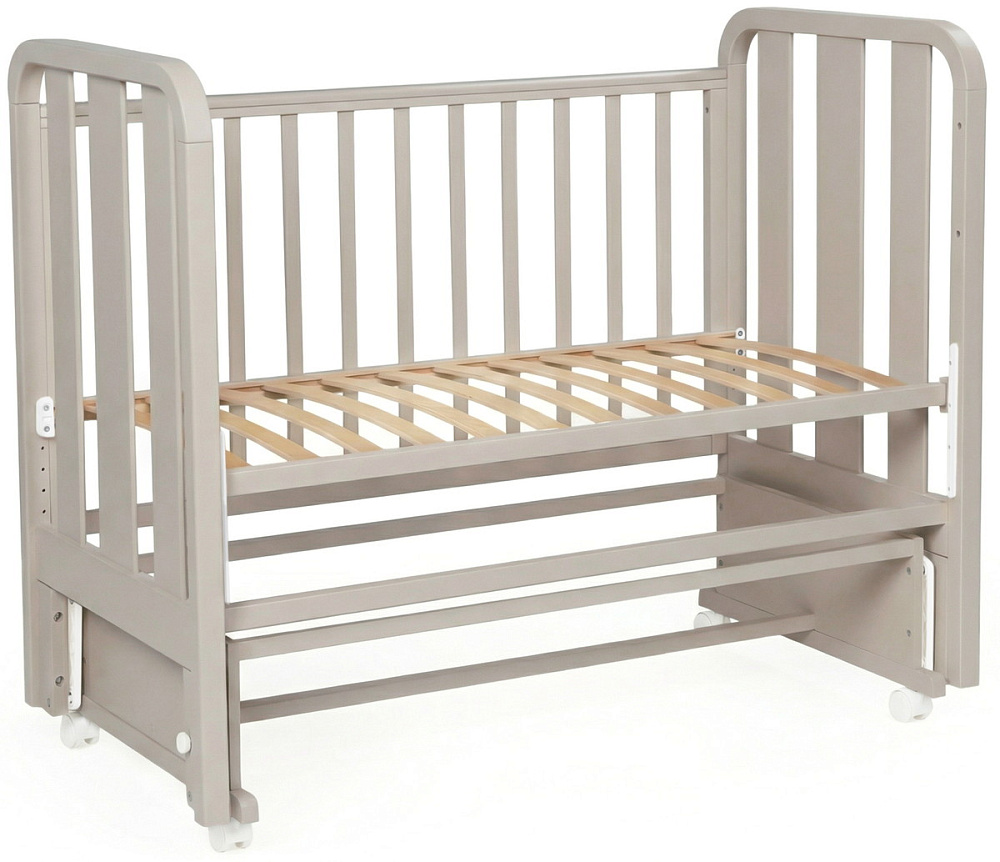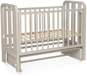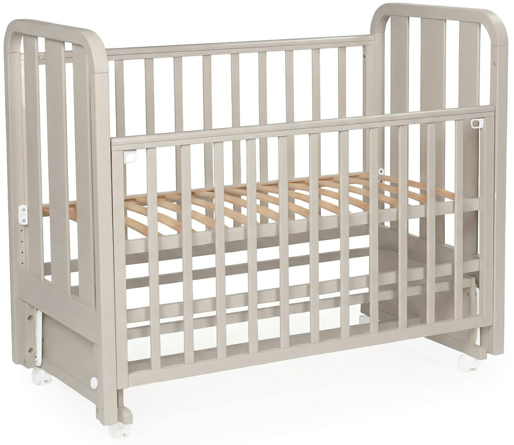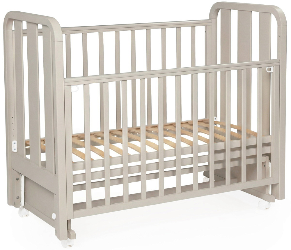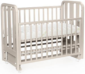 Кроватка имеет четыре поворотных колеса, для перемещения кроватки в комнате, для