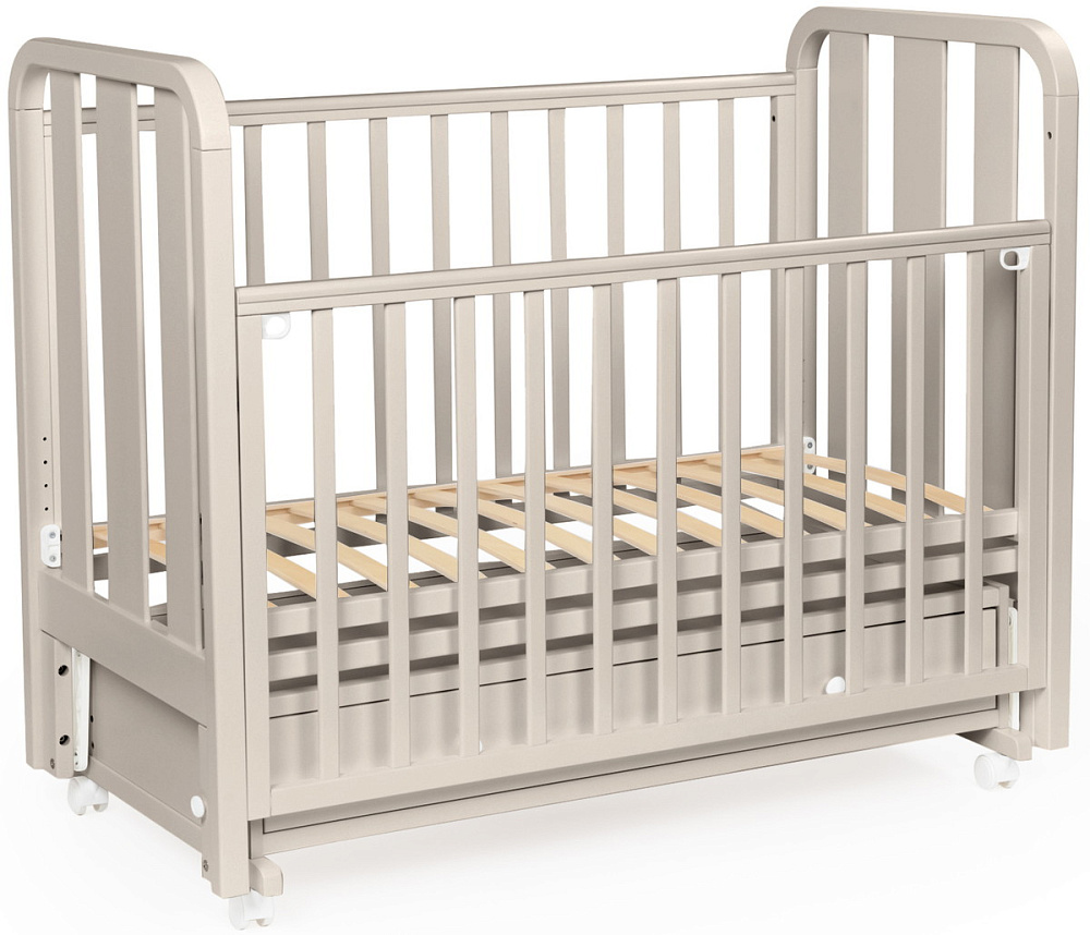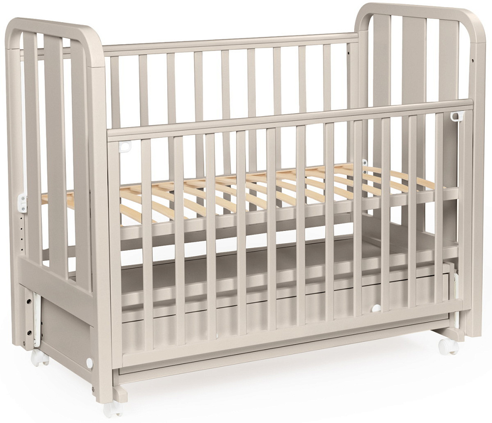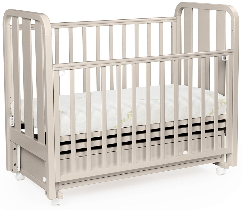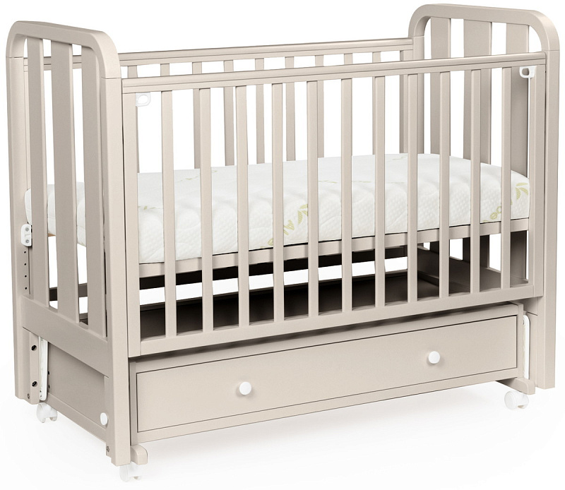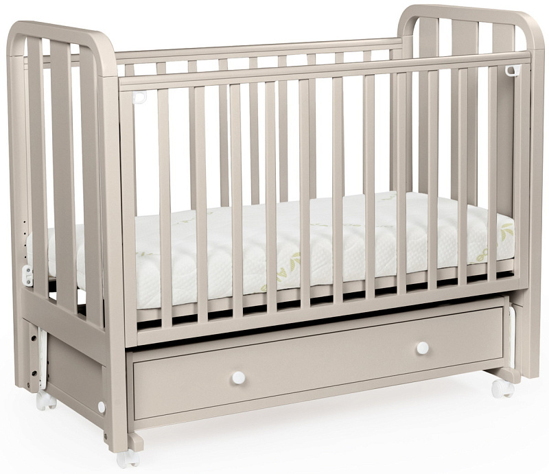 Детская кровать BEBIZARO HEIRLOOM – c универсальным маятником и ящиком. Это функциональная кроватка, продуманная до мелочей, это максимальный комфорт и безопасность для вашего малыша. Каркас кроватки выполнен из массива берёзы. Для удобства родителям, боковая стенка кроватки регулируется по высоте. Модель оборудована вместительным и практичным ящиком для хранения, а также колёсами для её перемещения по комнате.