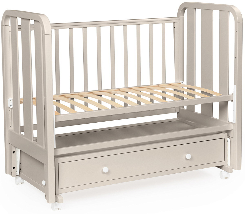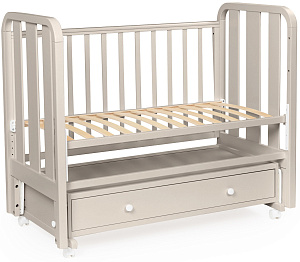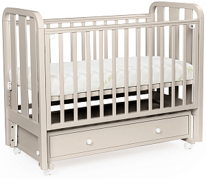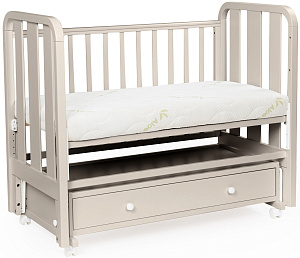 - Кроватка имеет удобный и практичный ящик для хранения белья;