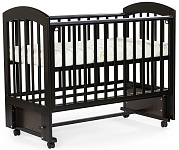 - кроватка имеет четыре поворотных колёса, для перемещения кроватки в комнате, для установки в неподвижном положении на двух из них имеются стопоры