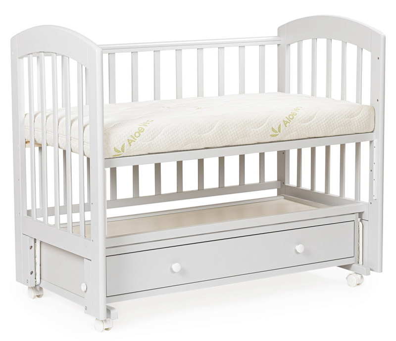 Детская кроватка Bebizaro Regency маятник универсальный с ящиком. Это функциональная кроватка, продуманная до мелочей, это максимальный комфорт и безопасность для вашего малыша. Каркас кроватки выполнен из массива берёзы. Для удобства родителям, боковая стенка кроватки регулируется по высоте. Модель оборудована вместительным и практичным ящиком для хранения, а также колёсами для её перемещения по комнате.