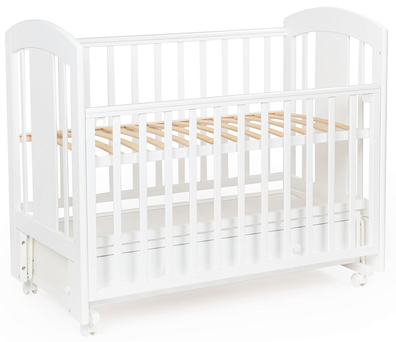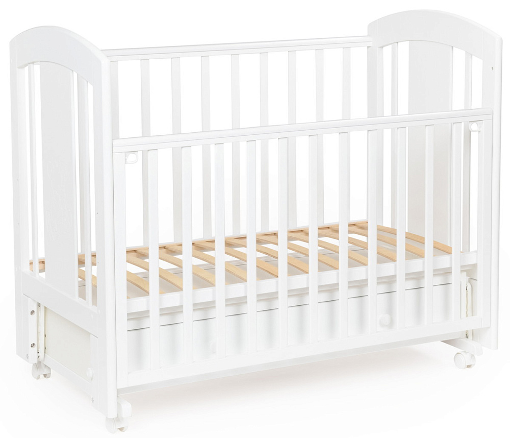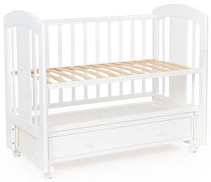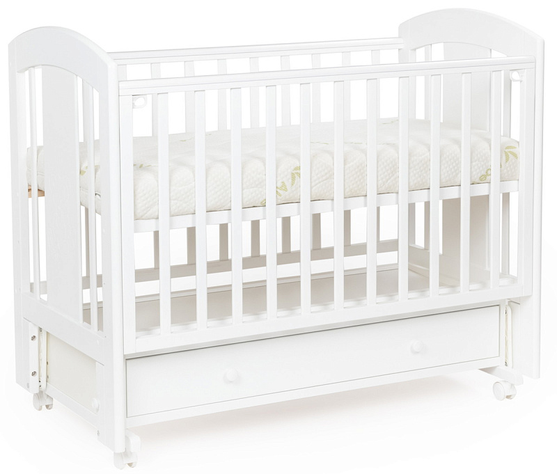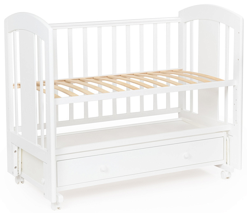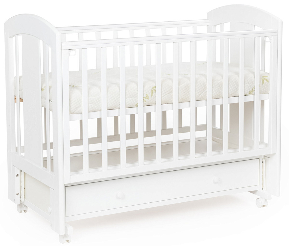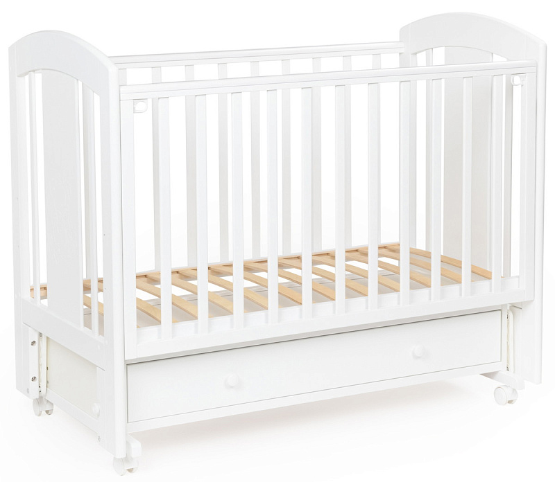 кроватка имеет удобный и практичный ящик для хранения белья;
