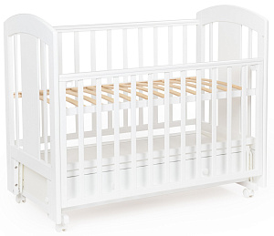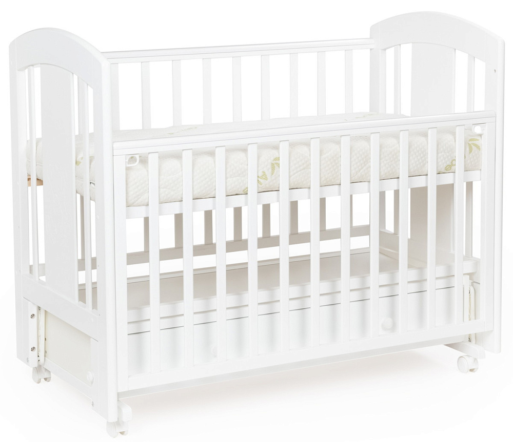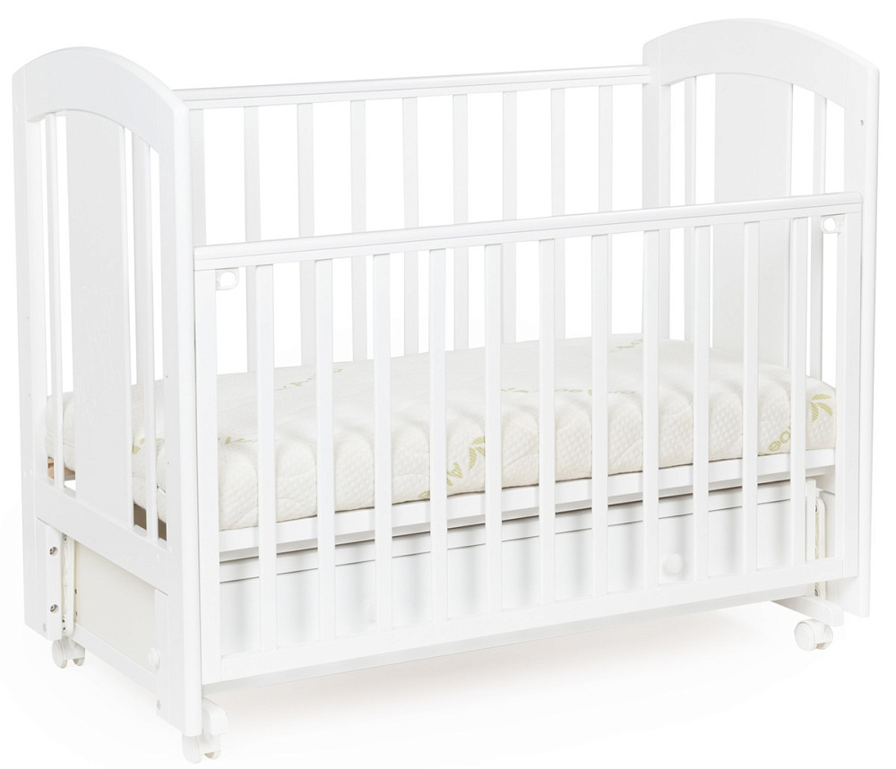Детская кровать BEBIZARO REGENCY TEDDY – с универсальным маятником и ящиком. Это функциональная кроватка, продуманная до мелочей, это максимальный комфорт и безопасность для вашего малыша. Каркас кроватки выполнен из массива берёзы. Для удобства родителям, боковая стенка кроватки регулируется по высоте. Модель оборудована вместительным и практичным ящиком для хранения, а также колёсами для её перемещения по комнате.