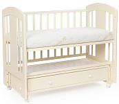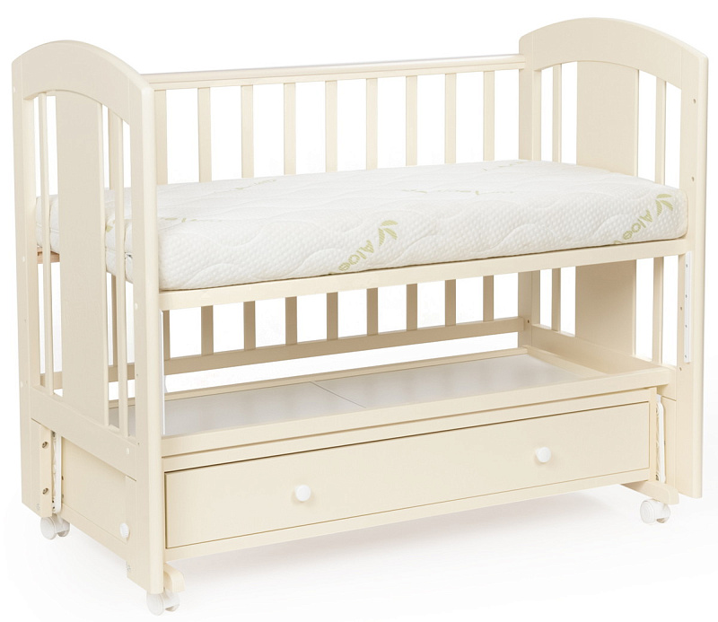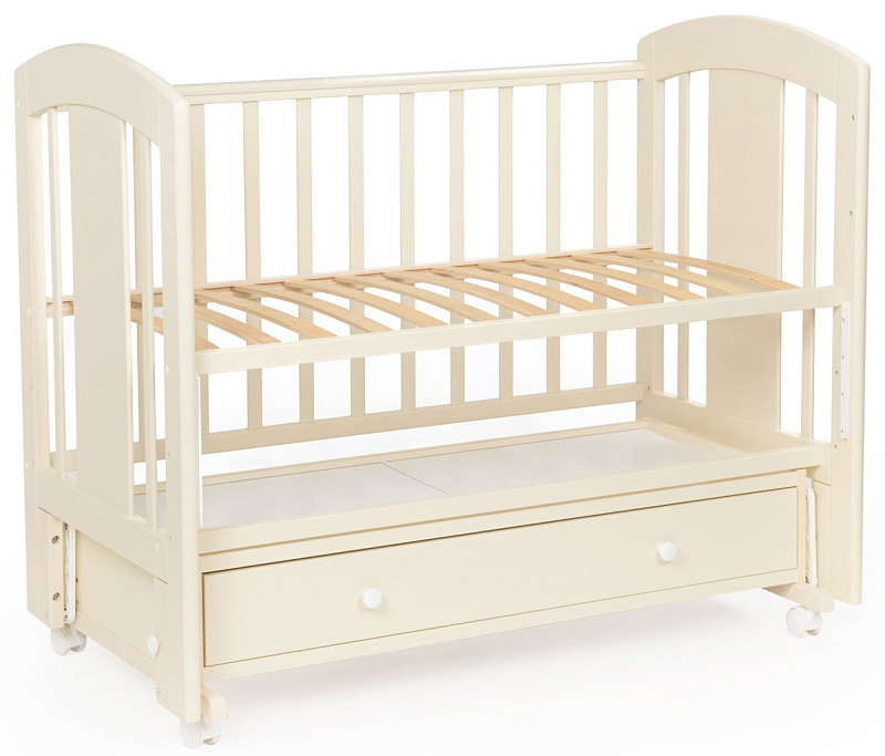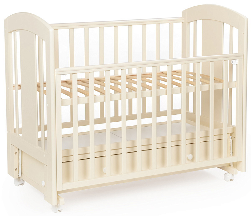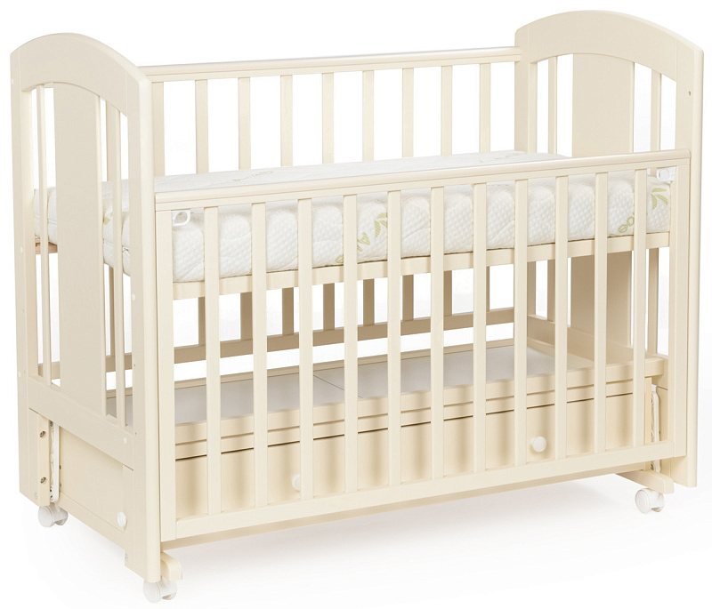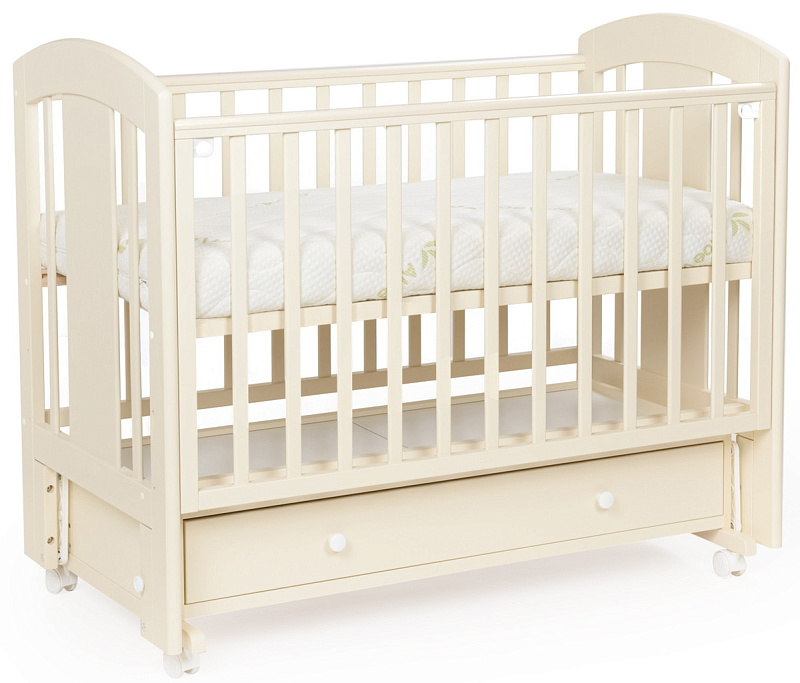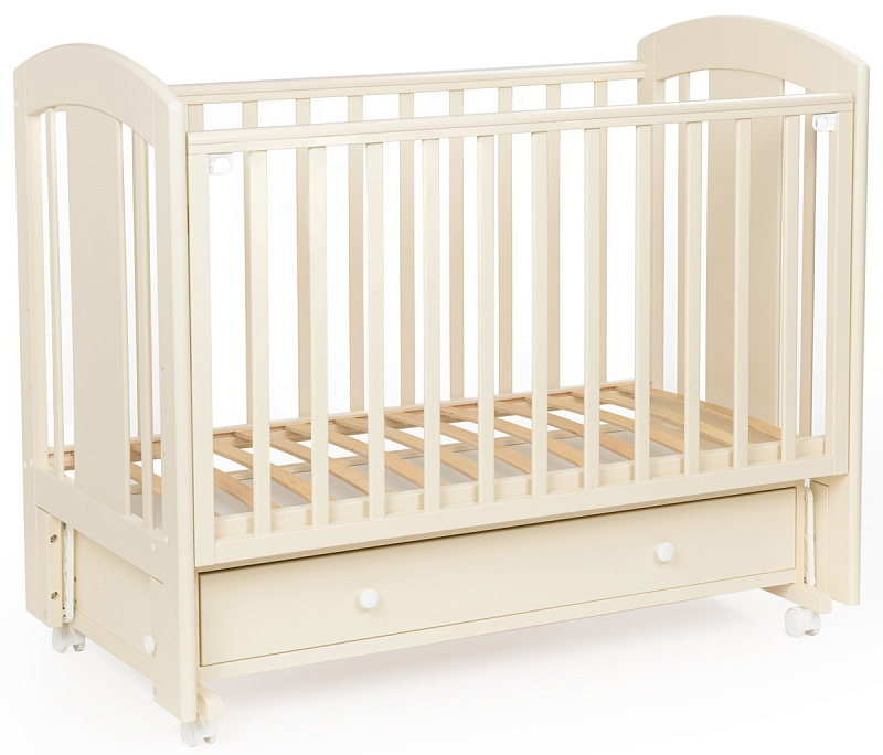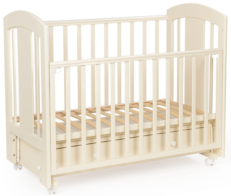 кроватка имеет удобный и практичный ящик для хранения белья;