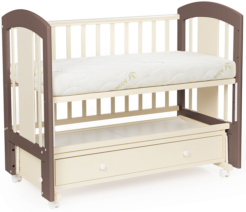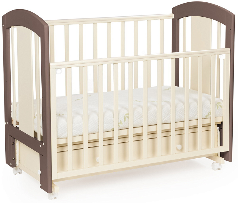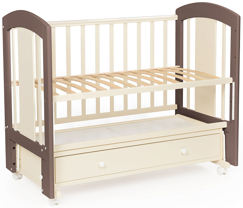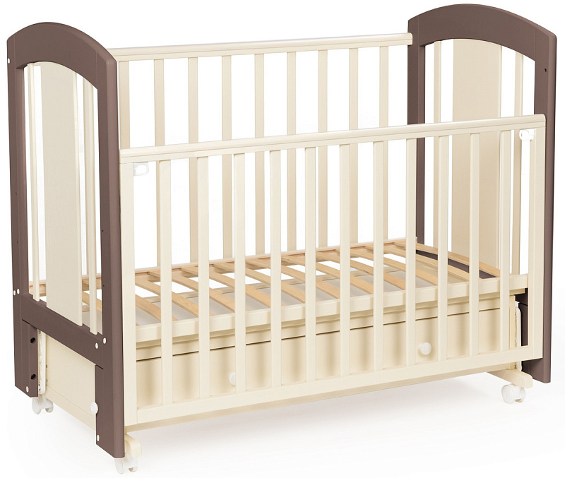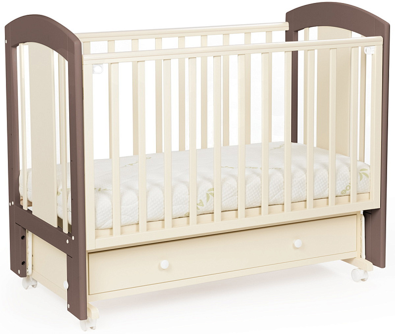 кроватка имеет удобный и практичный ящик для хранения белья;
