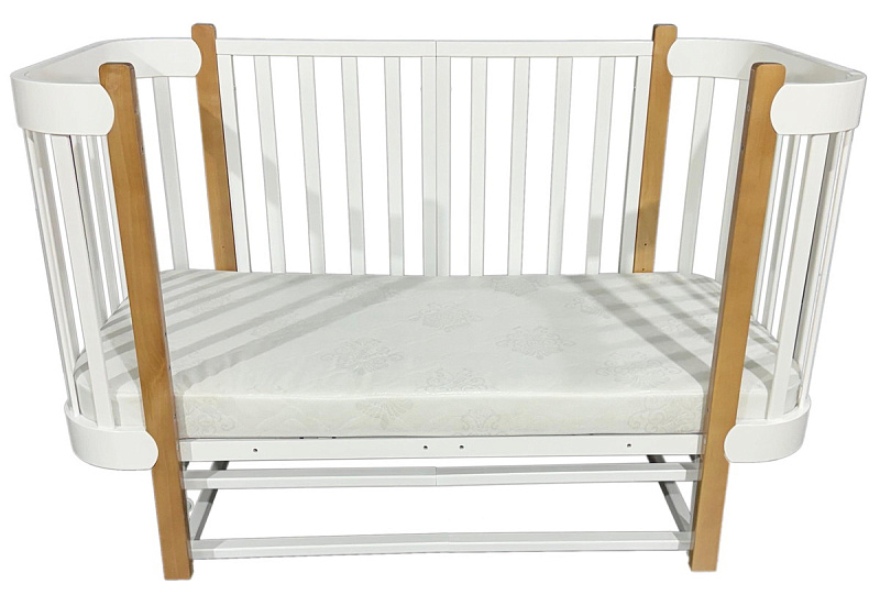 Детская кроватка ByTwinz Carly продольный маятник 3 в 1 белый/бук