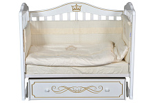 Кроватка с маятниковым механизмом универсального качания. Родители по достоинству оценят качество и комфорт системы, ее удобство и практичность. Кроватка производится в соответствии с европейскими стандартами качества из экологичных и безопасных для ребенка материалов: массива березы. Кроватка отлично впишется даже в самую компактную детскую комнату. Древесина покрыта нетоксичными, безвредными для детей краской и лаком. Реечное ортопедическое дно регулируемое - 3 положения по высоте. Силиконовые накладки-грызунки. В основании есть вместительный бельевой ящик закрытого типа.