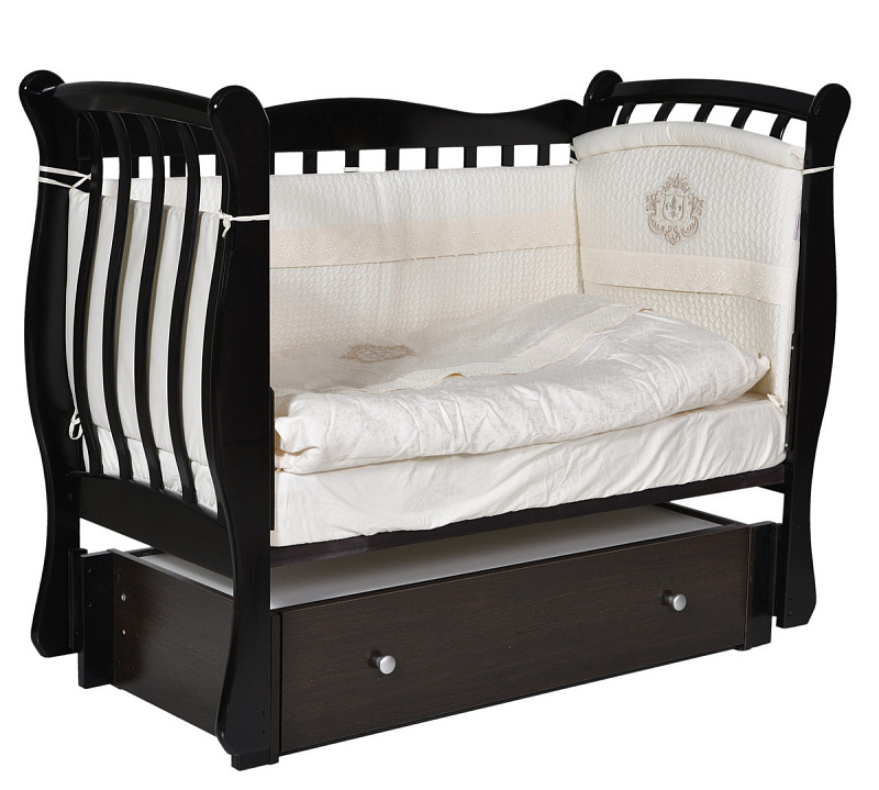 Кроватка с эксклюзивным дизайном для ваших малышей с маятниковым механизмом поперечного качания. Родители по достоинству оценят качество и комфорт системы, ее удобство и практичность. Кроватка производится в соответствии с европейскими стандартами качества из экологичных и безопасных для ребенка материалов: массива березы. Кроватка лишена неоправданной объемности, так что отлично впишется даже в самую компактную детскую комнату. Кроватка выполнена из массива березы, покрыта нетоксичными, безвредными для детей краской и лаком. Реечный ортопедический подматрасник регулируемое - 2 положения по высоте. Силиконовые накладки-грызунки. В основании есть вместительный бельевой ящик закрытого типа. Передняя автостенка плавно опускается при сдвиге курков по бокам.