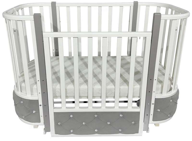 Детская кроватка ByTwinz Violetta 7 велюр, поперечный маятник, колесо белый/серый