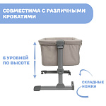 Кроватка регулируется по высоте, имеет 6 уровней и подходит к различным по высоте взрослым кроватям. Допустимая разница, устанавливаемая на ножках, составляет 2 уровня.
