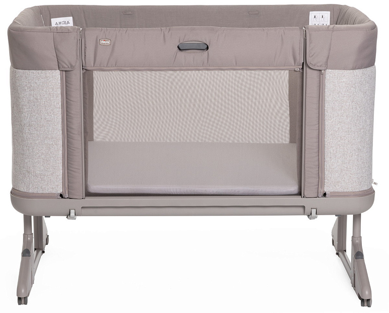 - кроватку легко передвигать благодаря 4-м вращающимся колёсам с тормозами