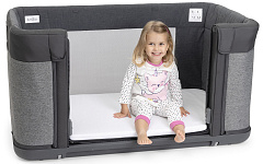 - напольная кроватка для подросших малышей. Благодаря съёмным ножкам и боковой панели, детки постарше легко могут сами заходить и выходить из кроватки, стимулируя, таким образом, свою самостоятельность и независимость