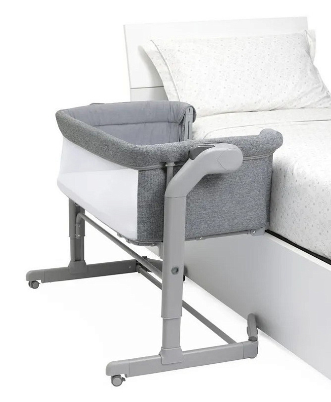 Складные ножки и 11 уровней по высоте делают кроватку совместимой с различными взрослыми кроватями, даже с теми, у которых есть выдвижные ящики.
