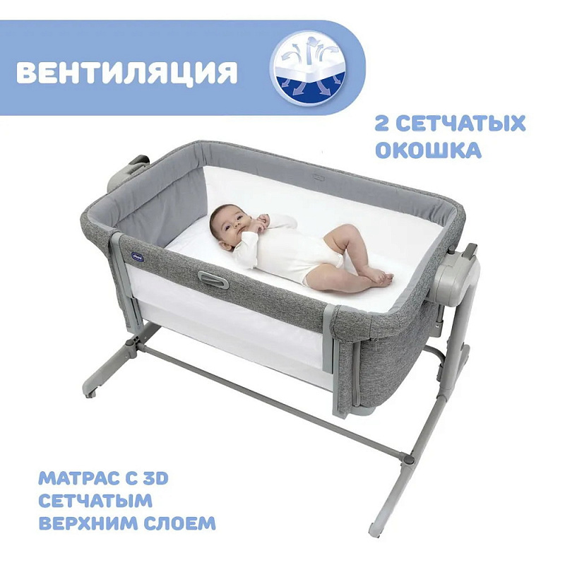 Детская приставная кроватка Chicco NEXT2ME MAGIC EVO позволяет быть маме с малышом в тесном контакте, наладить совместный сон и грудное вскармливание с самого рождения, с 0 месяцев.