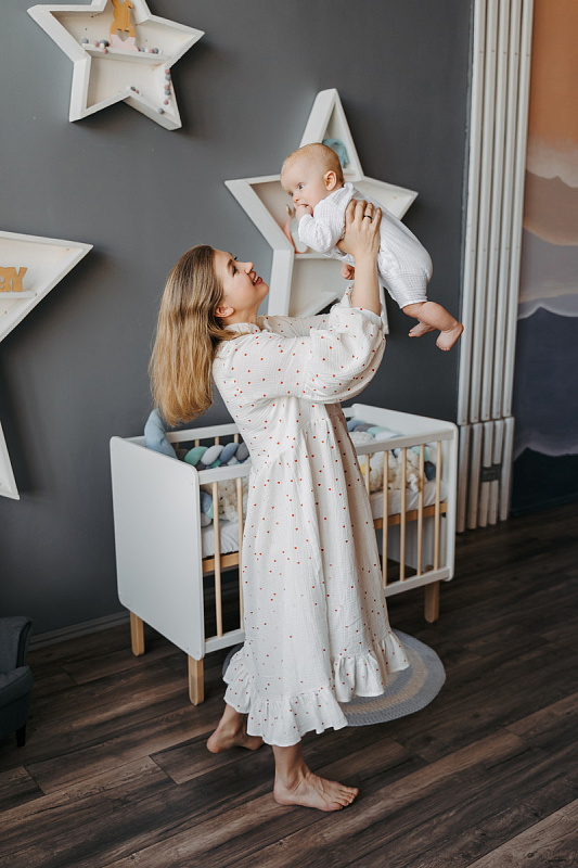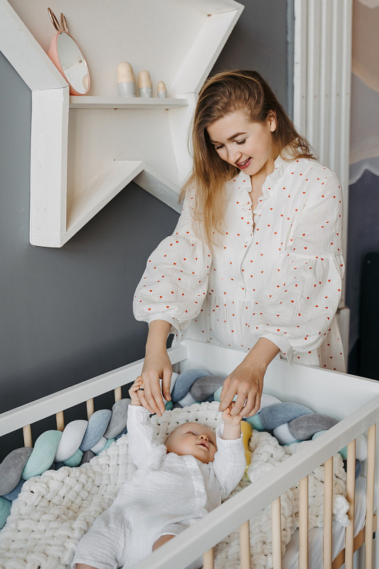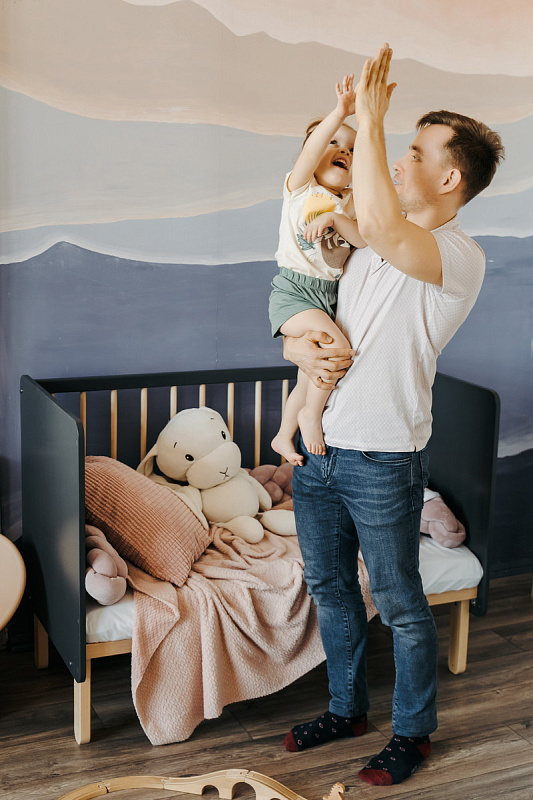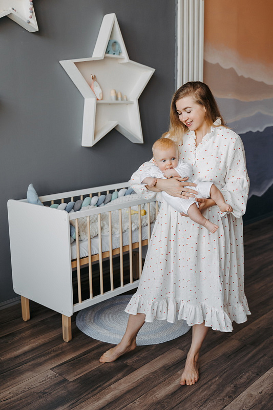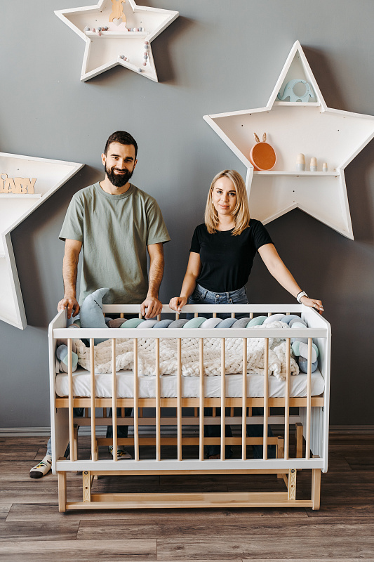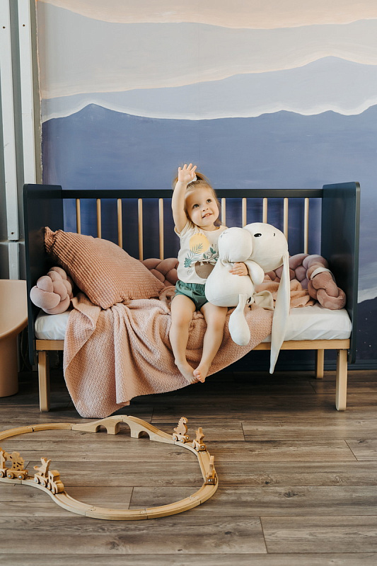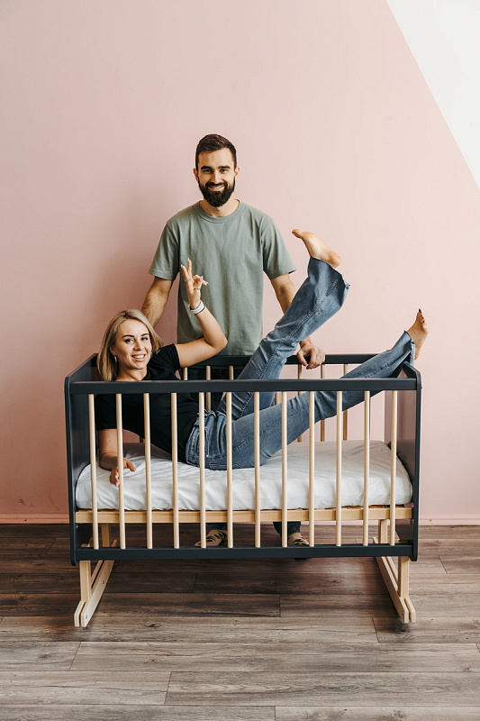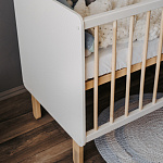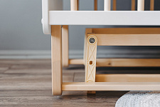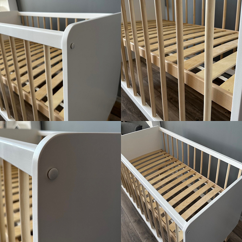 - Передняя стенка кровати полностью убирается, таким образом кроватку можно использовать как приставную.