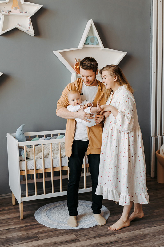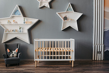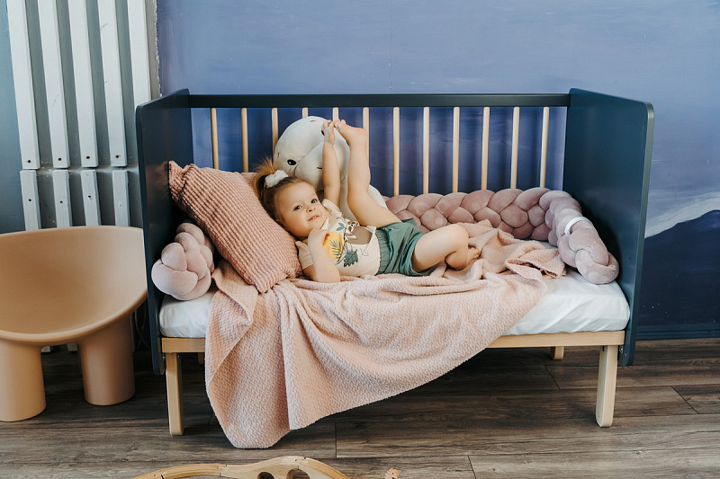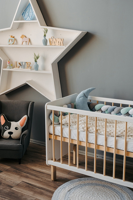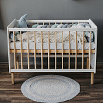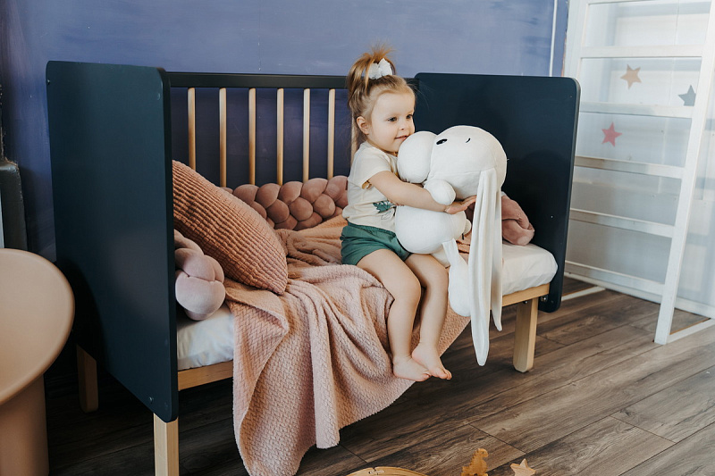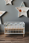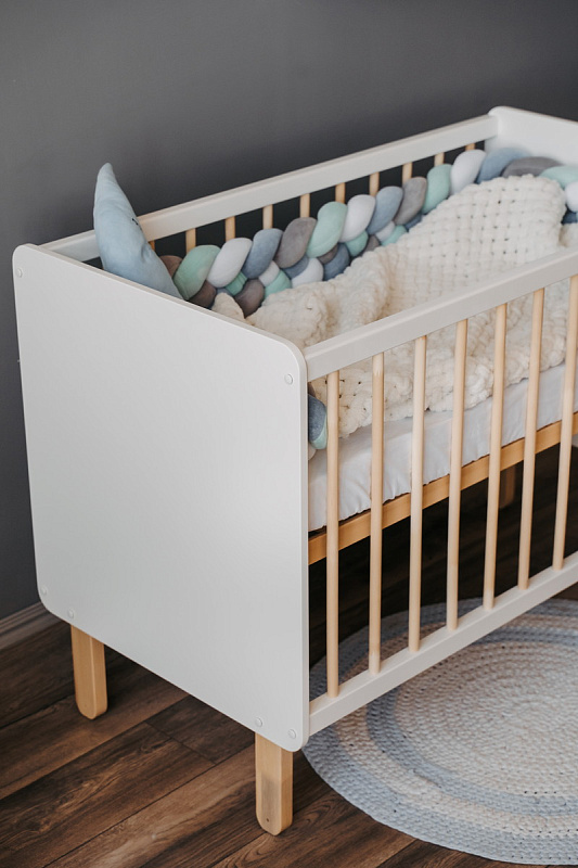 Кроватка изготовлена из массива березы, боковые стенки из МДФ класса Е1, безопасного для мебели 0+.