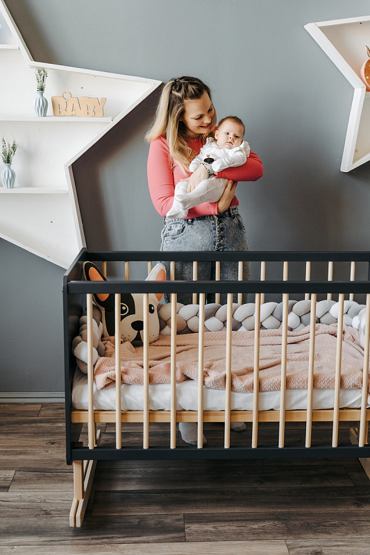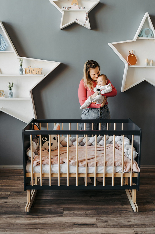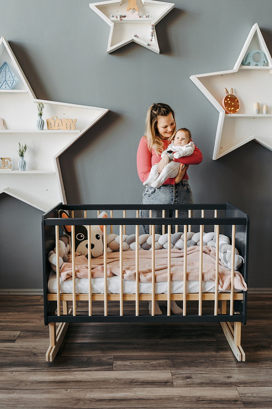 - При необходимости не кроватку можно установить качалку поперечного качения.