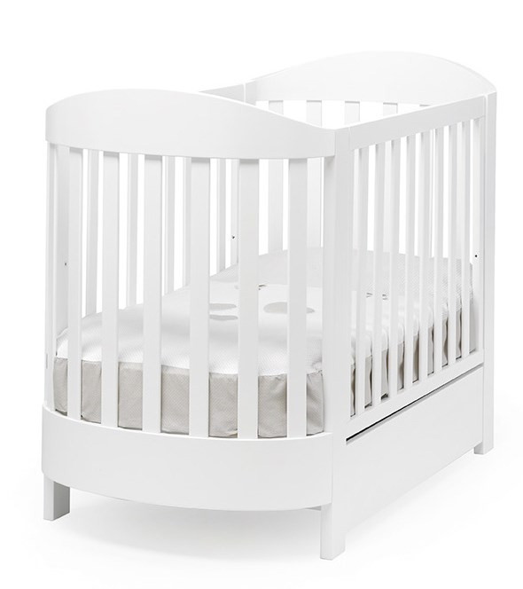 Овальный матрас Ariel входит в комплект кроватки и имеет размеры 128х60.