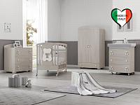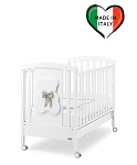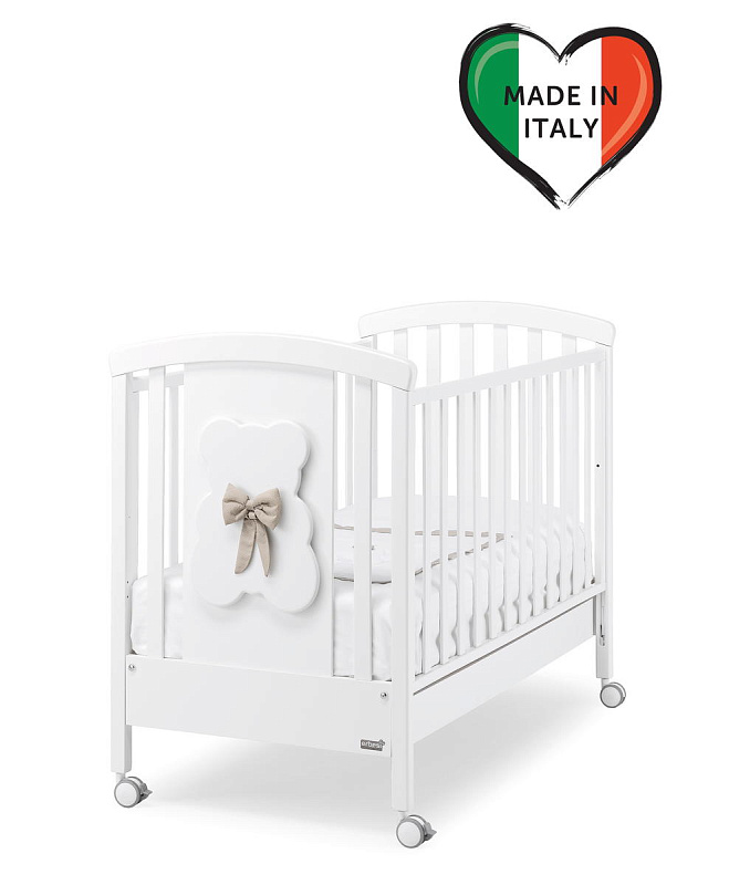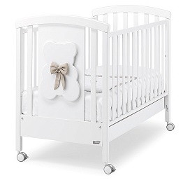 Кровать для ребенка с рождения Erbesi Dudu украшена аппликацией медвежонка с бантиком. Это классическая мебель на колесиках с двумя стопорами и резиновыми накладками. Боковые стенки регулируются системой secur-baby. Вы сможете одной рукой опустить и поднять боковину. Мебель изготовлена из натурального бука, окрашена не причиняющими вреда здоровью ребенка красками, покрыта экологичными лаками.