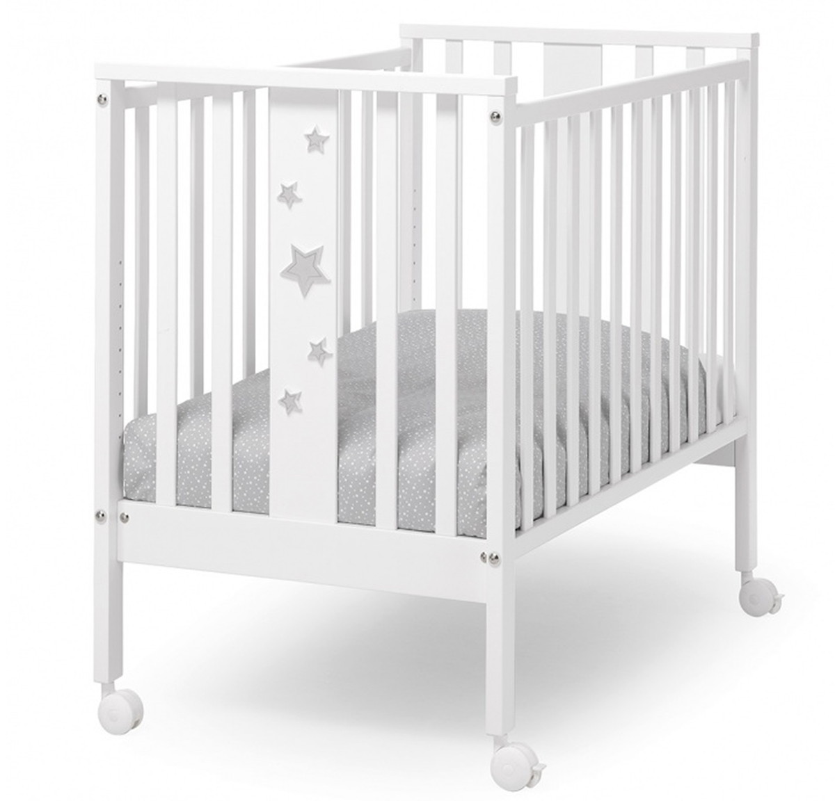 Кроватка Erbesi Mini Stelline (Мини Стеллини) изготовлена из массива бука и комплектуется ортопедическим матрасом. Наполнение матраса состоит из кокосового волокна и фиберформа, что обеспечивает комфорт и поддержку. Компактные размеры кроватки составляют 110 см в длину, 65,5 см в ширину и 98 см в высоту. Боковые панели не подлежат регулировке, однако высоту матраса можно настроить в девяти различных положениях, что позволяет установить его на одном уровне с любой взрослой кроватью. В комплект входят ремни для надежного крепления к взрослой кровати.