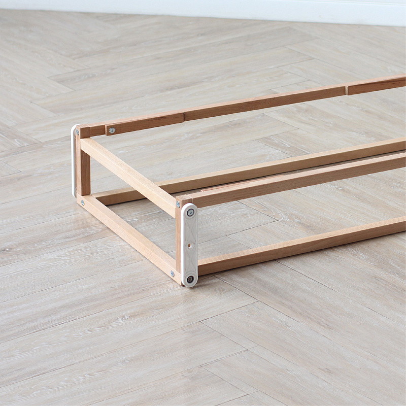 У детской кровати Onlybaby Scandi нет острых углов: закругленные края не только повышают безопасность, но и делают строгую геометрию более мягкой. Боковые стенки имеют увеличенное расстояние между рейками - 7,8 см. Ложе имеет три положения, верхнее для новорожденных, среднее положение для деток от 6 месяцев и нижнее положение для детей от 1 года до 5 лет, оно также позволяет использовать кроватку в качестве манежа. Передняя решётка легко убирается, чтобы было удобно придвинуть кровать поближе к родительской и обеспечить контакт с мамой.