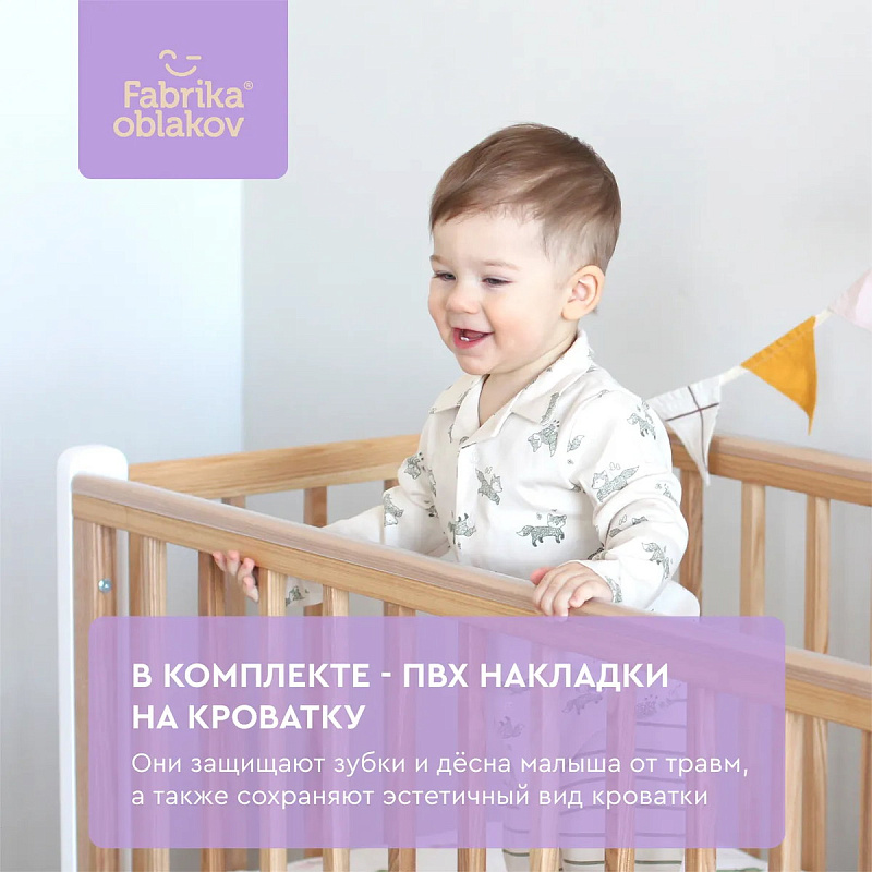 В дополнение к кроватке идет продольный маятник, который повторяет естественное укачивание и быстро успокаивает ребёнка. Маятник имеет удобные незаметные фиксаторы, разработанные специалистами «Фабрики облаков».