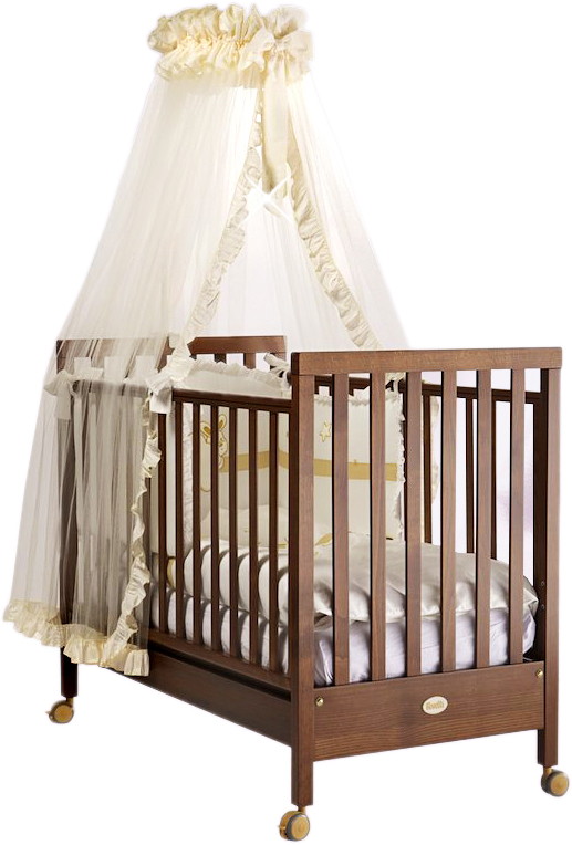 - Колесики со стопором делают кроватку Феретти Папа Коте Мерит простой в передвижении.
