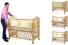 - Для максимального удобства по уходу за малышом борт можно опустить, а ложе приподнять или наоборот.