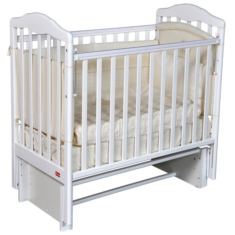 Кроватка оснащена универсальным, поперечным или продольным маятником, дополненным фиксатором. Модель изготовлена из качественных материалов.