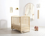 - Кроватка-качалка дополнительно укомплектована 4мя колесиками, что делает ее маневренной и устойчивой в случае необходимости.