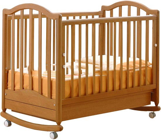 - Плавные полозья для качания дополнены набором поворотных колесиков, которые сделают кроватку очень устойчиво и простой в перемещении, если нужно.