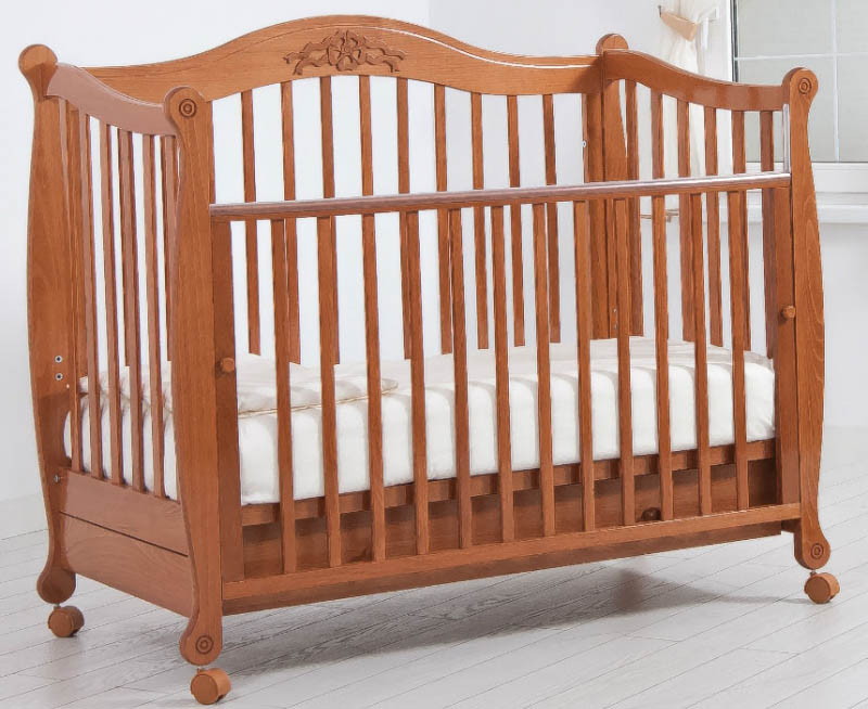 - Кроватка установлена на маневренные поворотные колесики, которые делают ее перемещение простой процедурой.