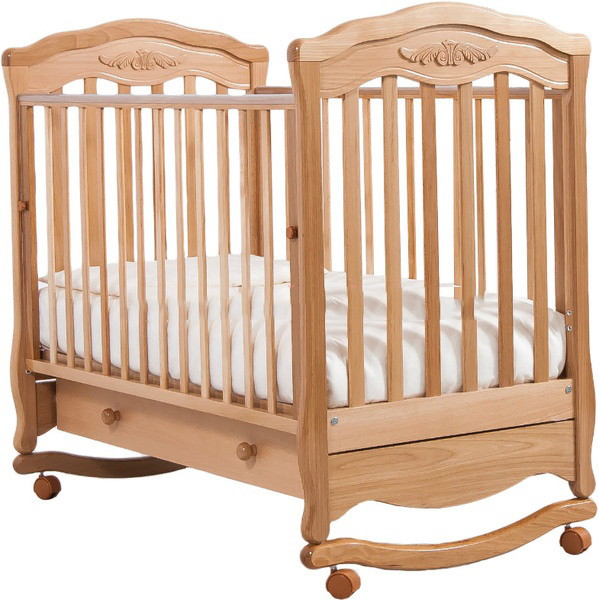 Детская кроватка-качалка производства русского бренда Гандылян Шарлотта является, пожалуй, самым удачным решением во всей линейке детских кроваток компании, так как отождествляет не только высокую функциональность, но и безупречный стиль и изысканность, выполнена в лучших традициях отечественного мебельного промысла.