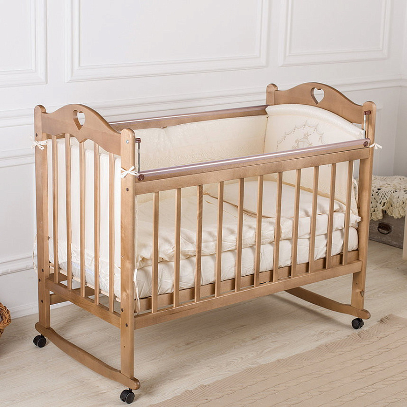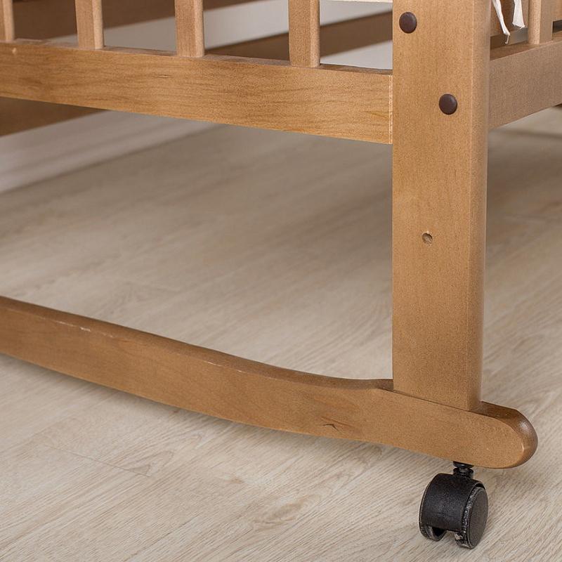 Дно кроватки- ортопедическая сетка из неокрашенного материала.