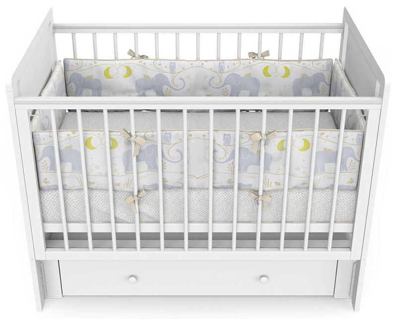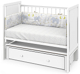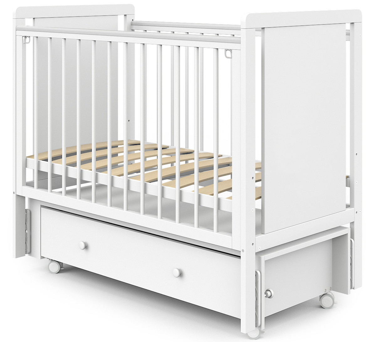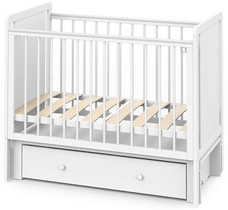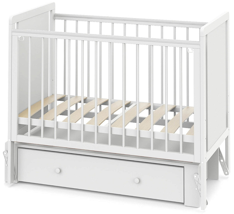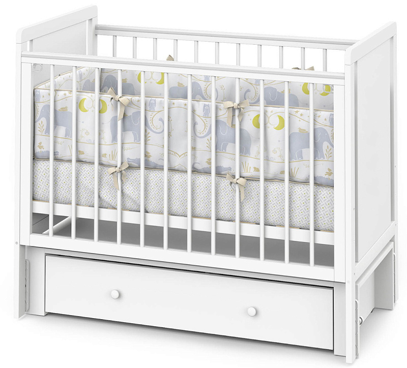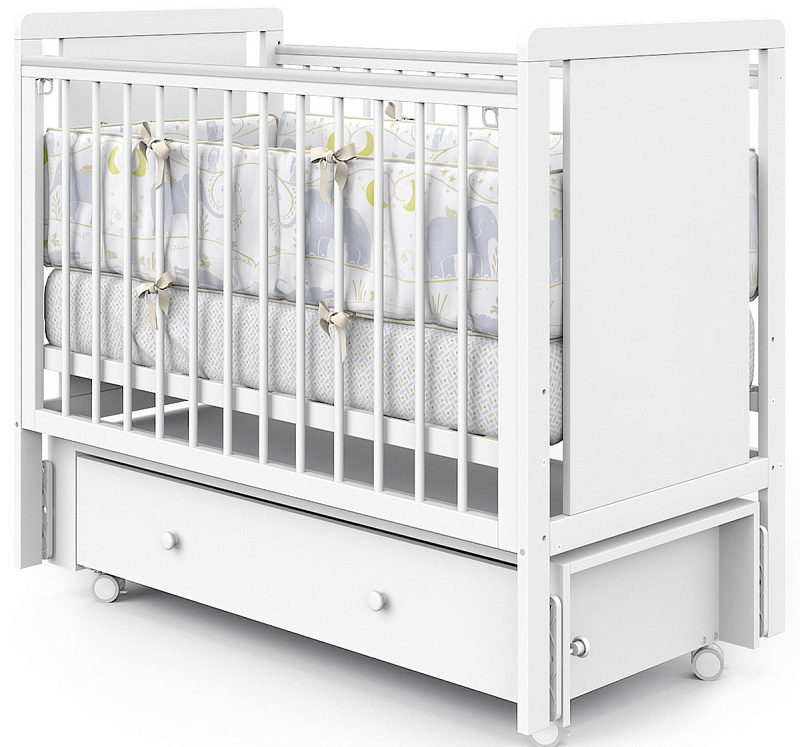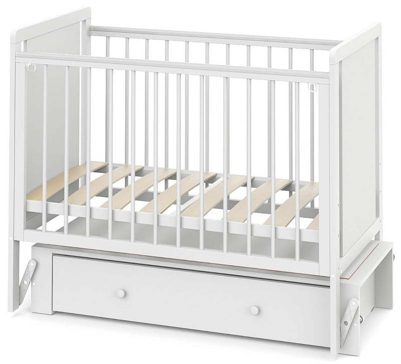 Детская кроватка Indigo Classic маятник, колеса,ящик белая аляска